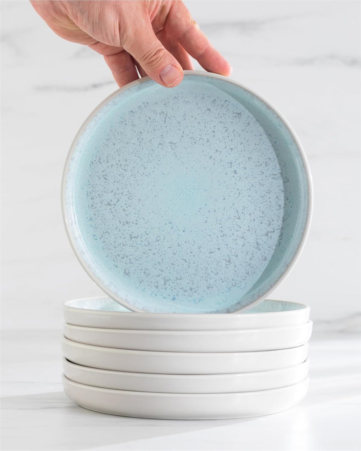 Each set includes 4 dinner plates, 4 salad plates, and 4 bowls, perfect for serving your favorite meals in style. The elegant combination of beige and light blue colors adds a contemporary flair to your table setting, making it ideal for both casual dinners and special occasions.